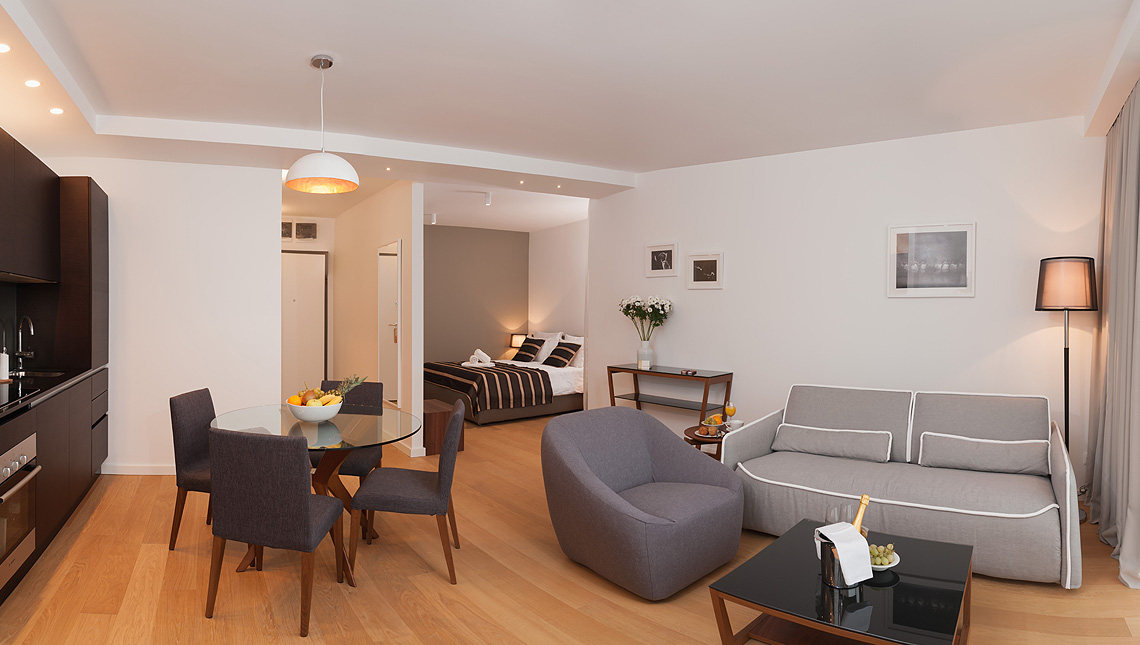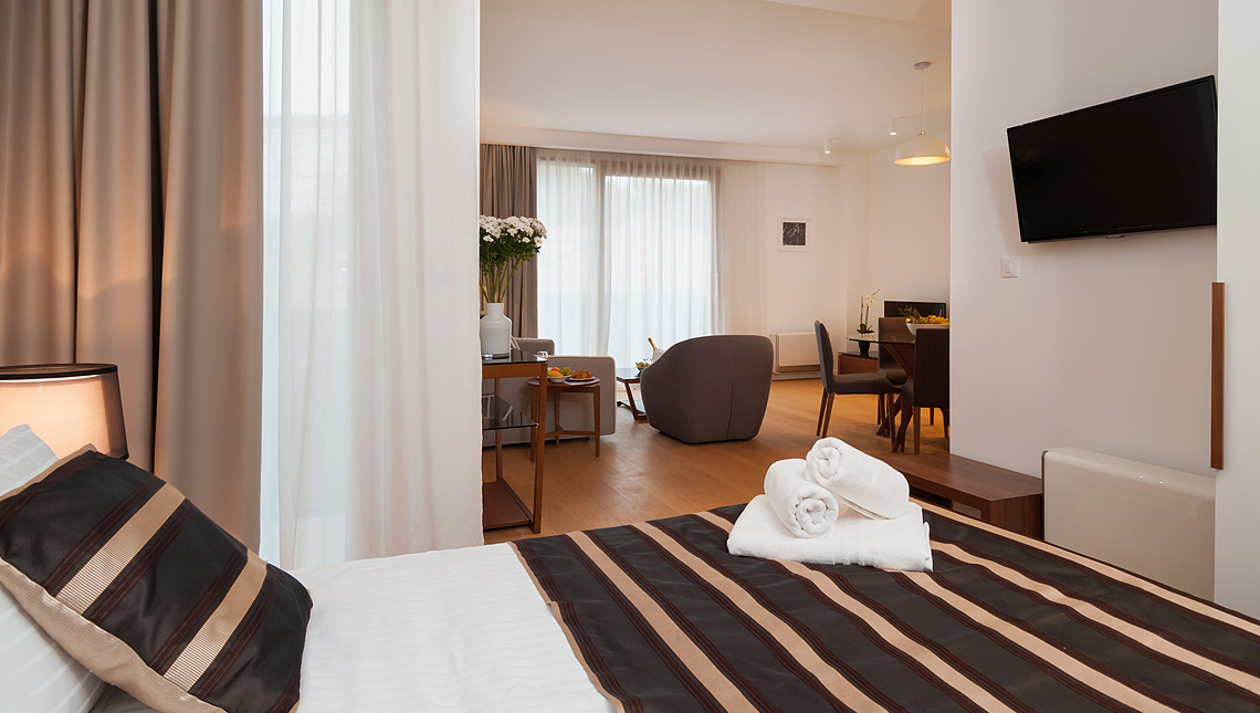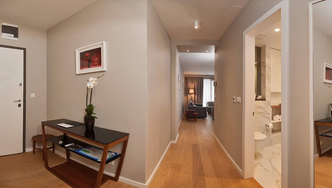 “Residence by Vestibul Palace” is located next to the medieval fortress Gripe, near to the old town. This residential accommodation facility with its 5 luxury apartments, 24h guarded garage, video surveillance of object, elevator, concierge service, offers ideal accommodation for a longer stay. Modern decor and comfortable apartments with top-quality designer furniture, “Residence by Vestibul Palace” fosters design and comfort. Suites are equipped with excellent air conditioning, LCD TVs and wireless internet.